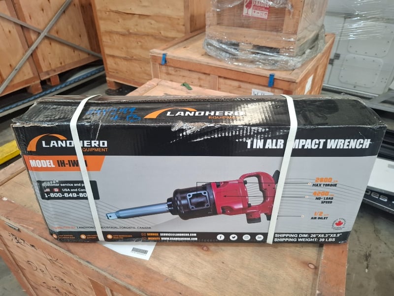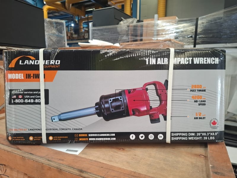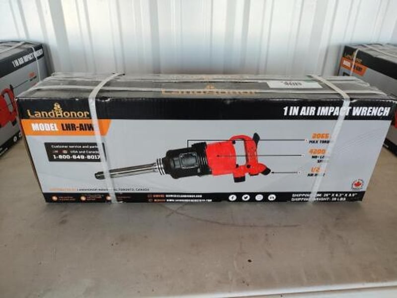 FACTORY DIRECT ** Unused Landhonor, AIR IMPACT WRENCH - LDH-AIW1Sguare Drive : 1"Air Pressure : 100-170 psiMechanism : Pinless HammerMax Torgue : 2800 ft·lbApplicable Torque : 1106-1895 ft·lbBlade Length : 2.1inWeight : 34IbsAnvil Length : 8.85inNo-Load Speed : 4200rpmAir Inlet : 1/2in PTHose Inner Dia. : 1/2inSHIPPINGWEIGHT:39LBSSize Approx: 26" * 6.3" * 8.9"Weight Approx: 18 kgPlease note: minor scuffs and marks may be evident For more information Contact King Cheung on 0477987576 or [email protected] *** PLEASE NOTE Collections must occur within 7 days of Auction Ending*** Note: OEM images and VIDEOS shown are for illustration purposes only, and used as a guide only, inspections highly recommended. ZTCU4518468