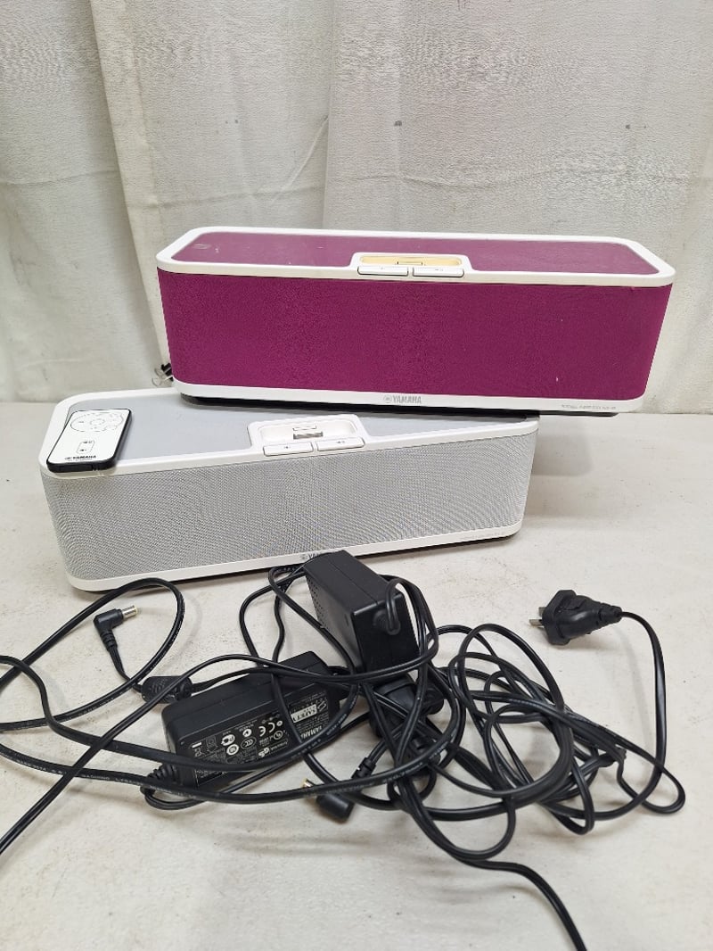 2x YAMAHA PDX-30 powered speaker syste, docking iphone or ipod, with cords and remote