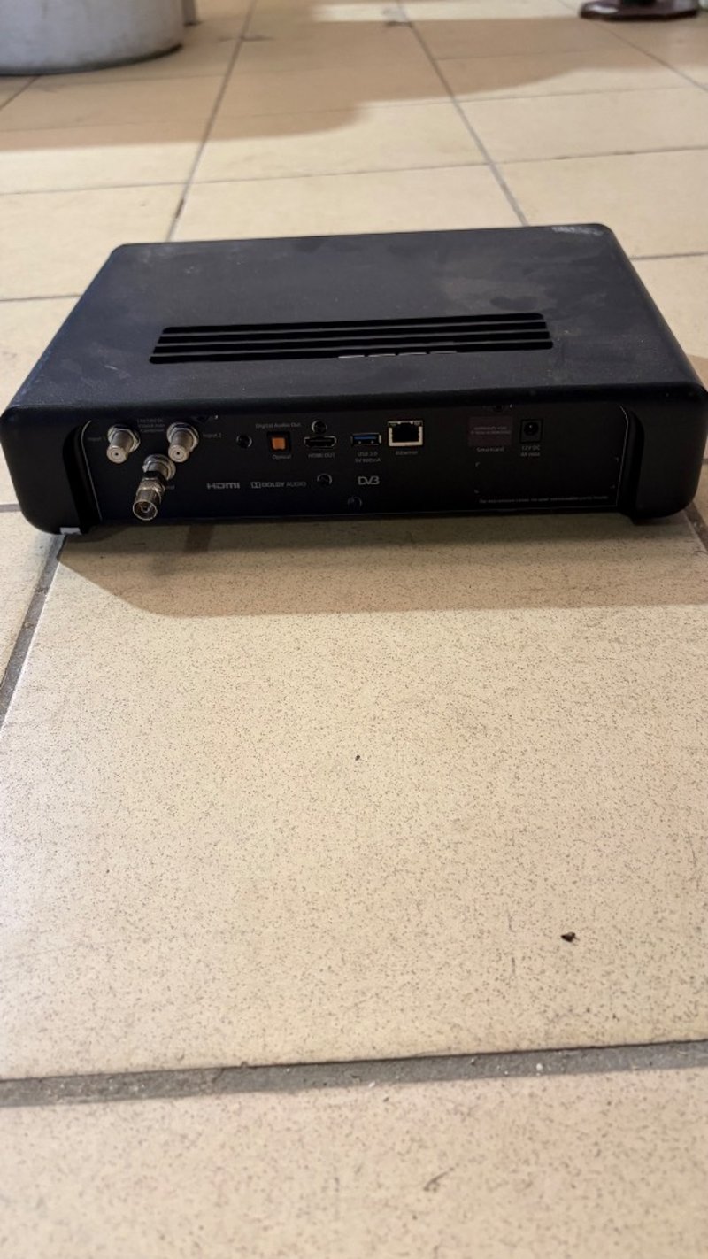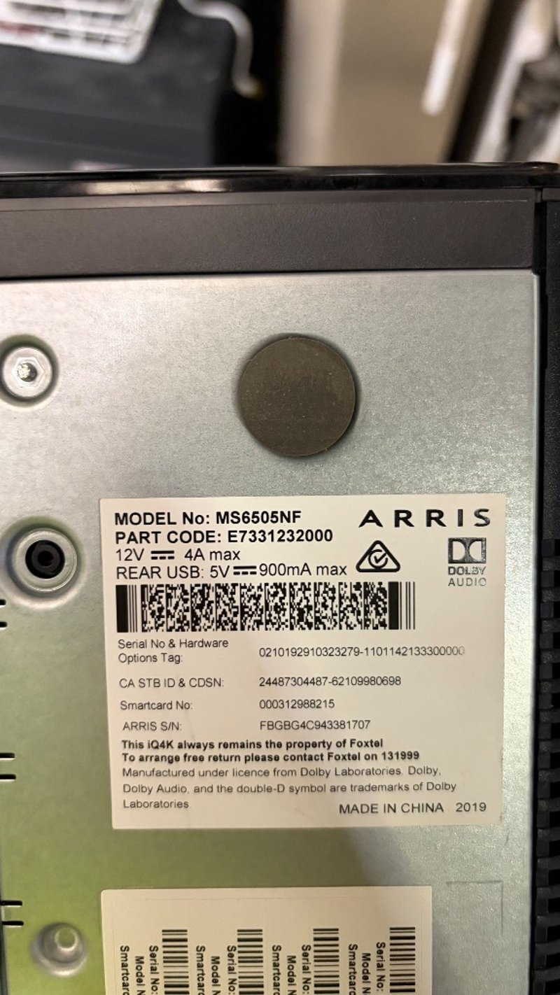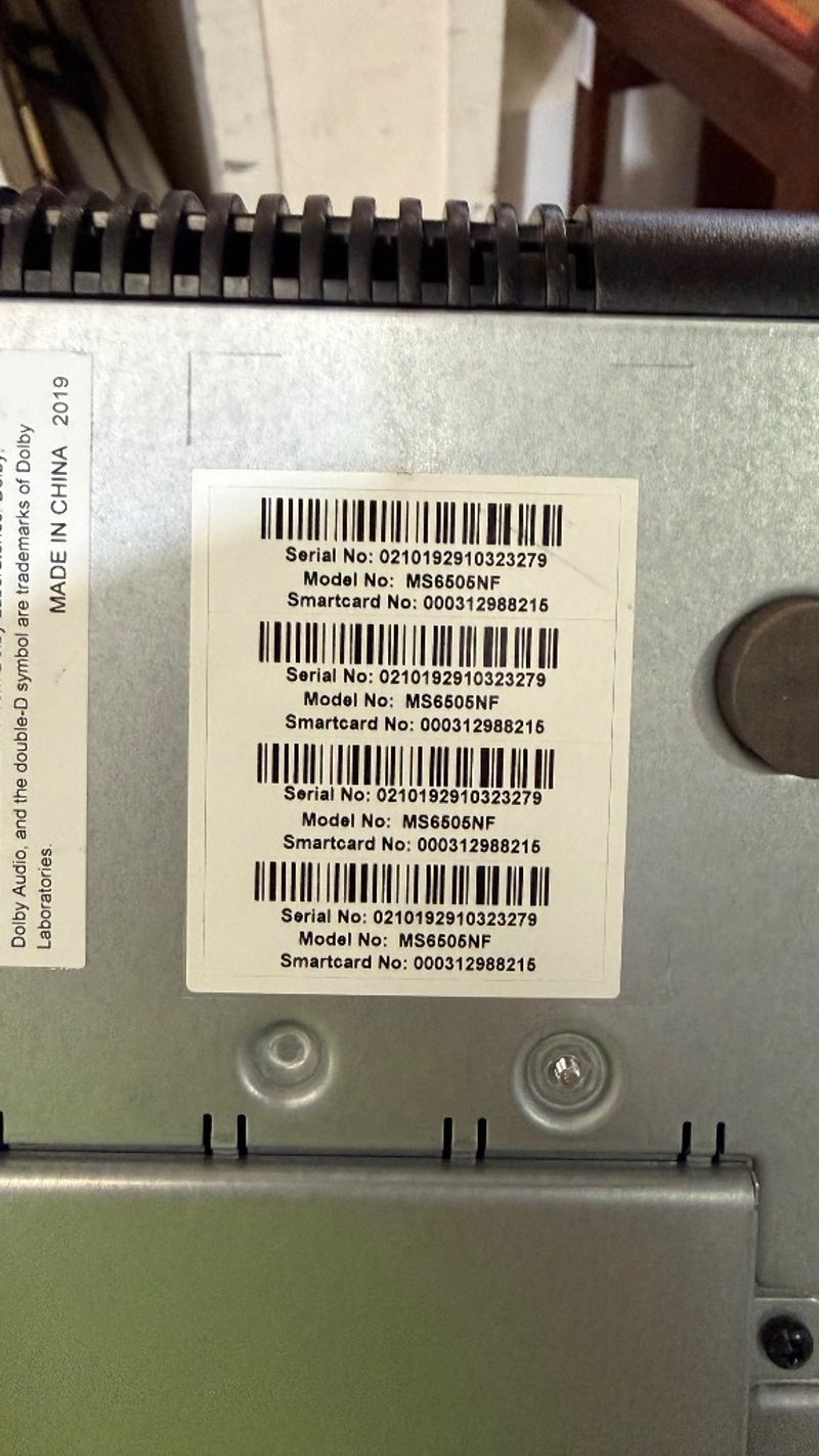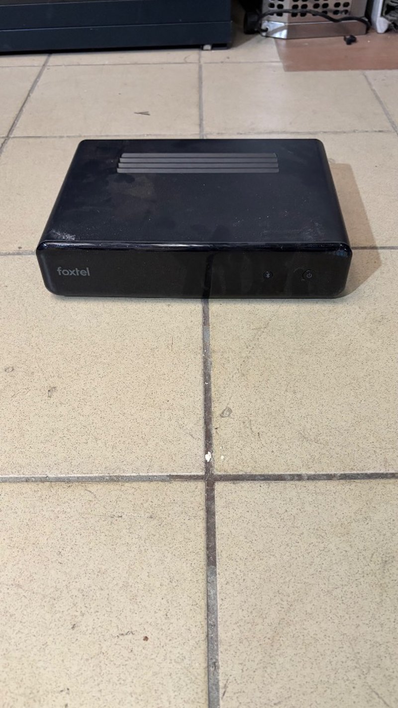 Foxtel box, black.Model: MS6505NFDimensions: H 7.5cm, W 32.5cm, D 24cm