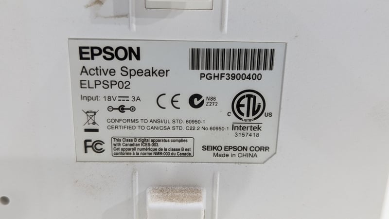 Active Speakers, Epson, Model: ELPSP02, With Cords, Dimensions: 23cm(H)×16cm(W)×15cm(D)