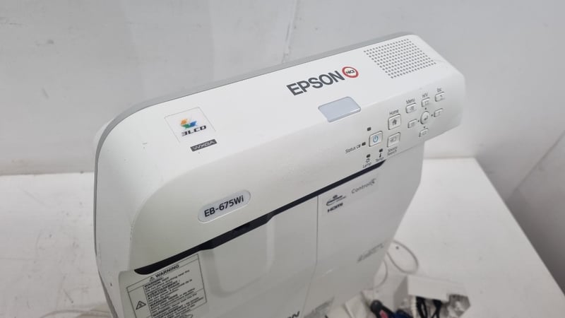 1280x800 Ultra Short Throw Projector HDMI VGA 3500 Lumens, Epson EB-685Wi. Includes Additional Media Cables Note: Unit Powers On