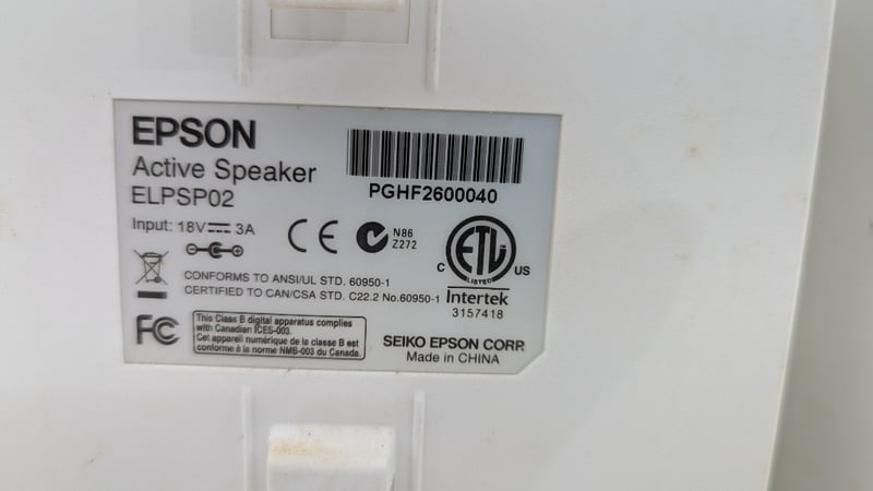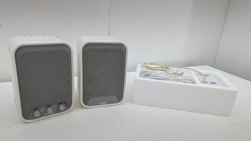 Active Speakers, Epson, Model: ELPSP02, With Cords, Power Cord Will Need Replacing, Dimensions: 23cm(H)×16cm(W)×15cm(D)