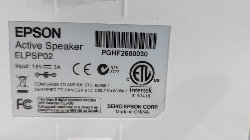 Active Speakers, Epson, Model: ELPSP02, With Cords, Dimensions: 23cm(H)×16cm(W)×15cm(D)