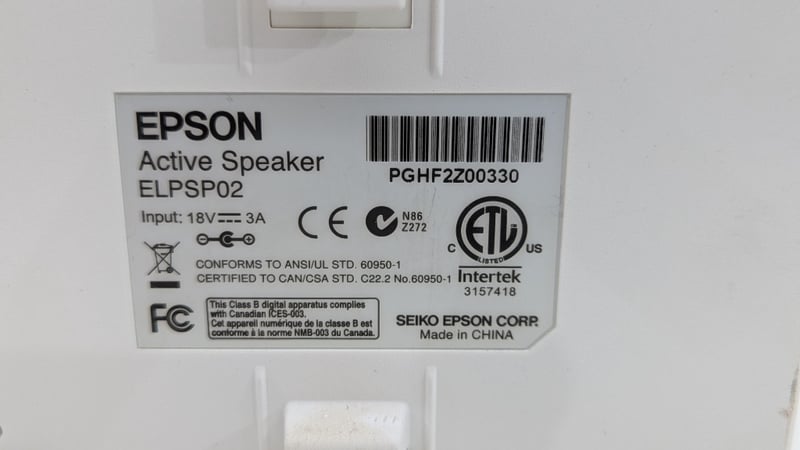 Active Speakers, Epson, Model: ELPSP02, With Cords, Dimensions: 23cm(H)×16cm(W)×15cm(D)