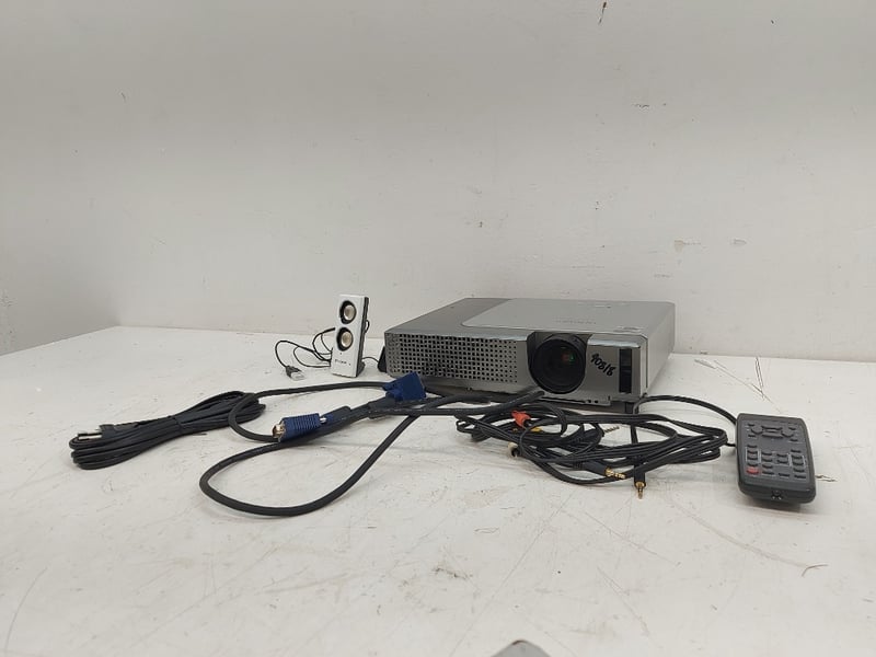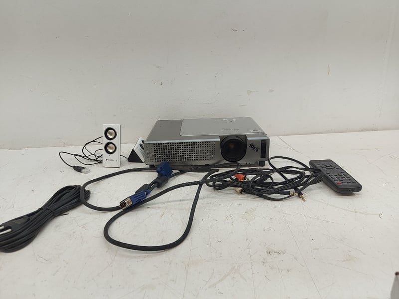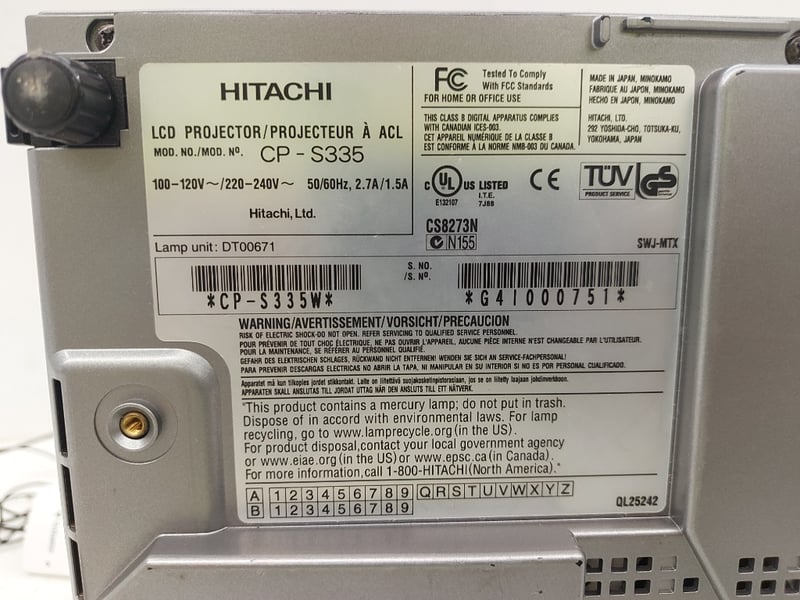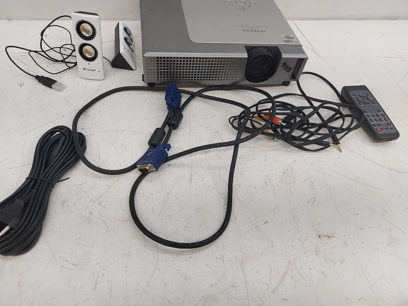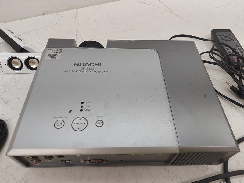 Multimedia LCD Projector, Hitachi, Model CP-S335, Push Buttons, Remote, Speakers, Dimensions 29cmW×24cmD×8cmH
