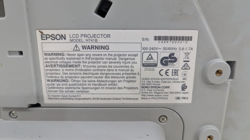 LCD Projector, Epson, Model: H7441B, Push Button Controls, HDMI, Dimensions: 20cm(H)×37cm(W)×40cm(D)