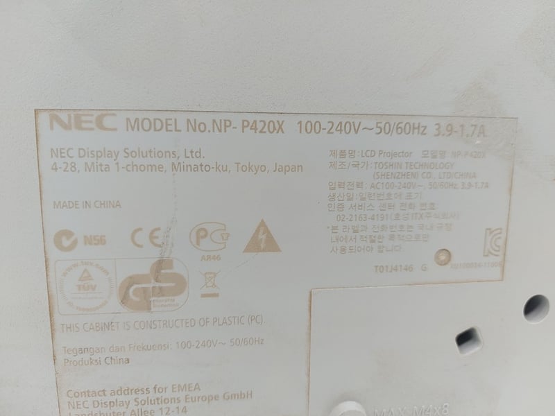 LCD Projector, NEC X13-12055, Model: NP-P420X, Push Button Controls, Remote And Pens, HDMI, Dimensions: 20cm(H)×37cm(W)×40cm(D)