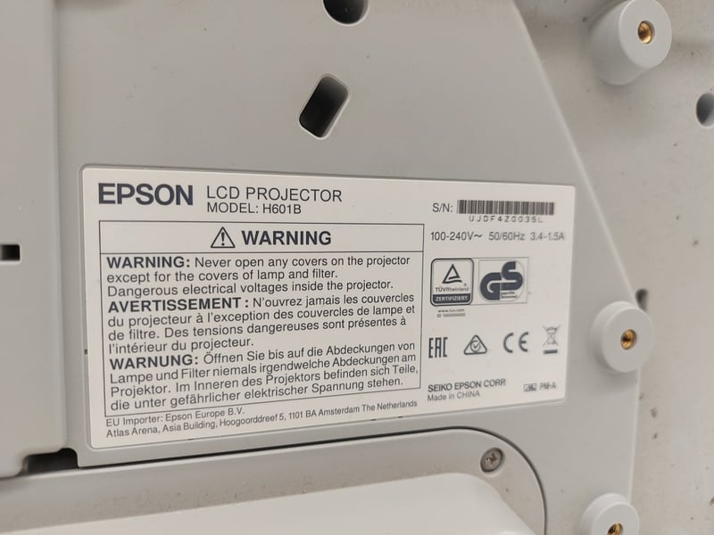 LCD Projector, Epson EB-575Wi, Model: H601B, Push Button Controls, HDMI, Dimensions: 20cm(H)×37cm(W)×40cm(D)