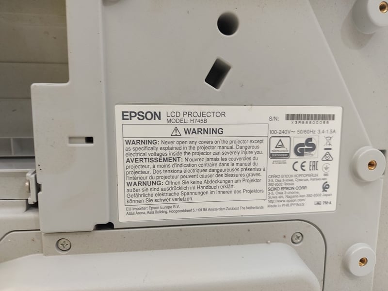 LCD Projector, Epson EB-675W, Model: H745B, Push Button Controls, HDMI, Dimensions: 20cm(H)×37cm(W)×40cm(D),