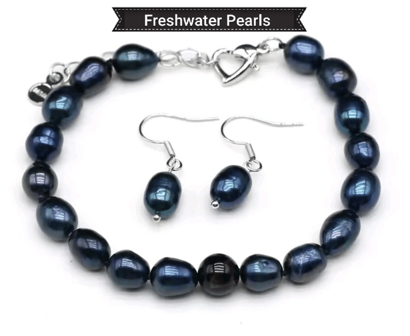 BLACK TAHITAN 8-9 MM FRESHWATER PEARLS BRACELET WITH DROP EARRINGS