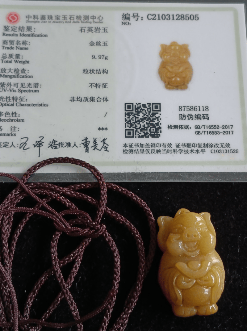 CERTIFIED CHINESE YELLOW JADE PENDANT NECKLACE