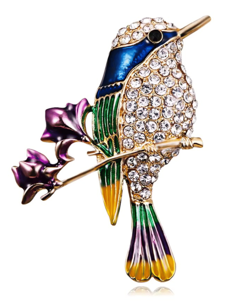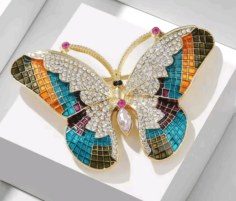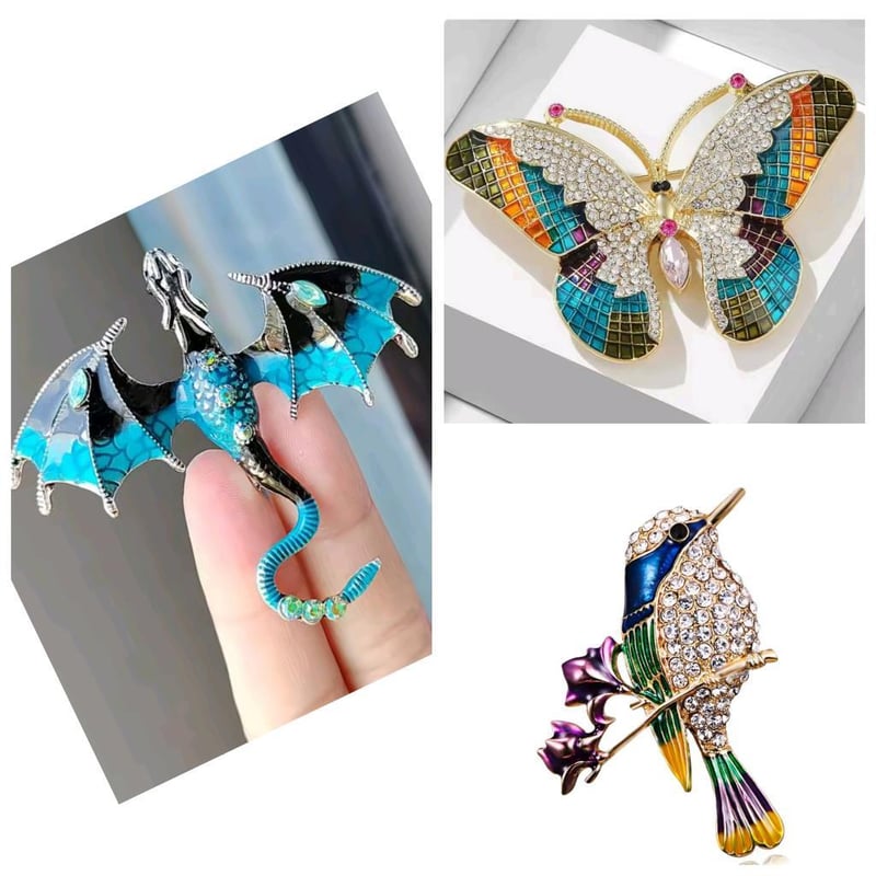 3 X CRYSTAL AND ENAMEL BROOCHES DRAGON BUTTERFLY AND BIRD DESIGN