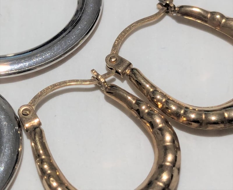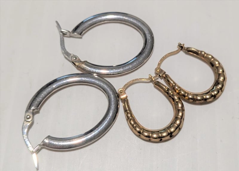9CT WHITE & YELLOW GOLD EARRINGS, MARKED 375