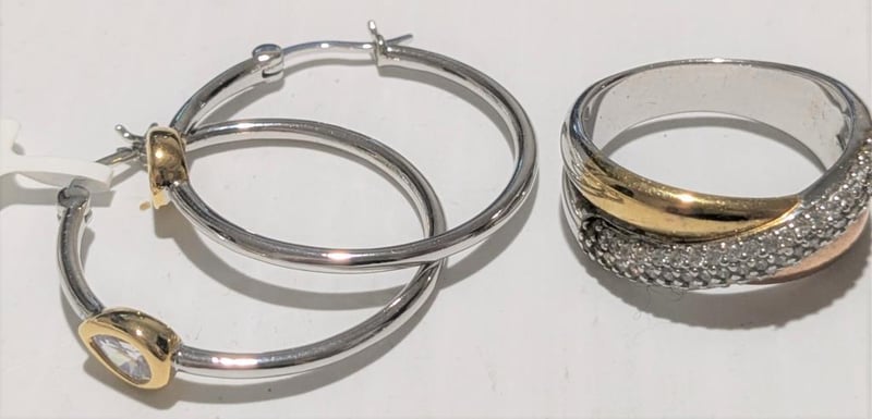 STERLING SILVER EARRINGS & RING, MARKED 925