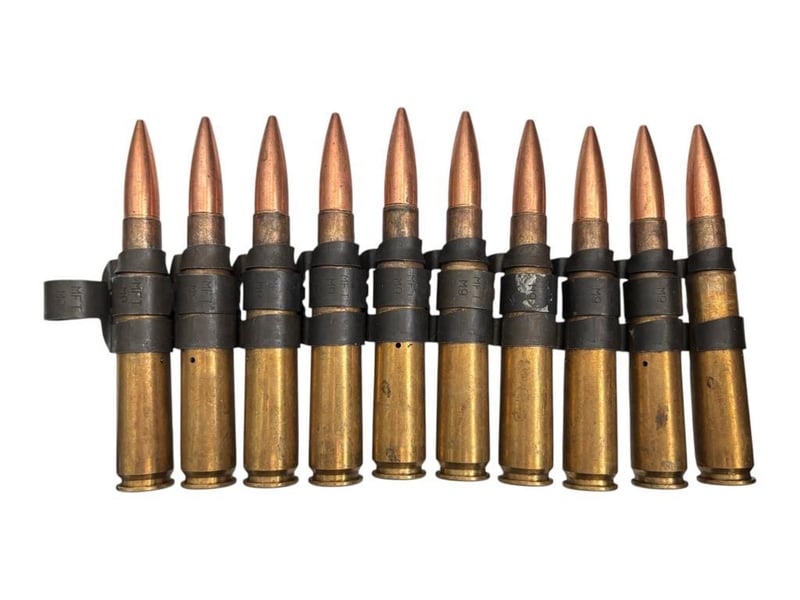 INERT MG LINK OF TEN .50CAL BMG ROUNDS Inert Ammunition For Display Purposes OnlyCondition: Good - Refer Images233666+4