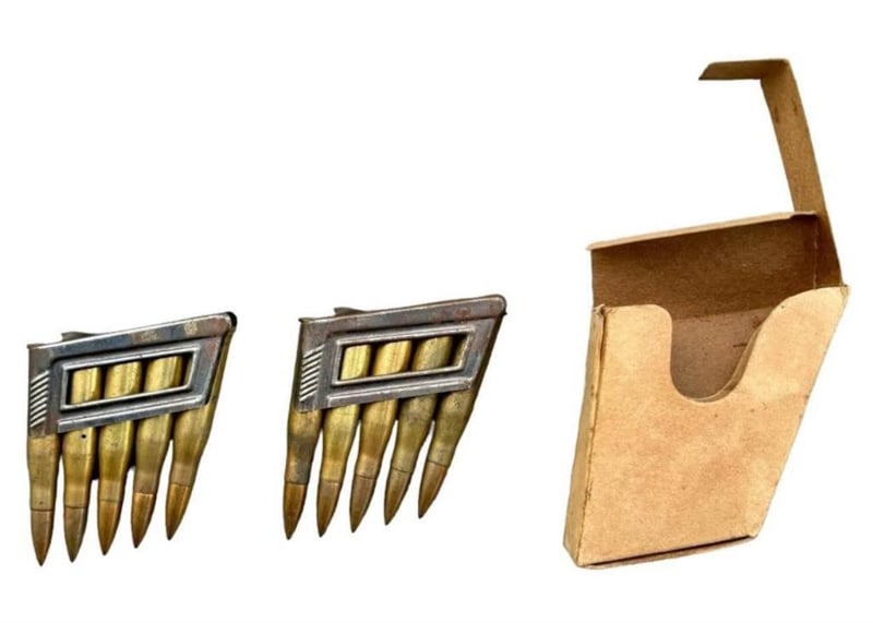 SCARCE INERT 2 X WW2 AUSTRO-HUNGARIAN 8X56R CARTRIDGES IN CLIPS AND ORIGINAL BOX