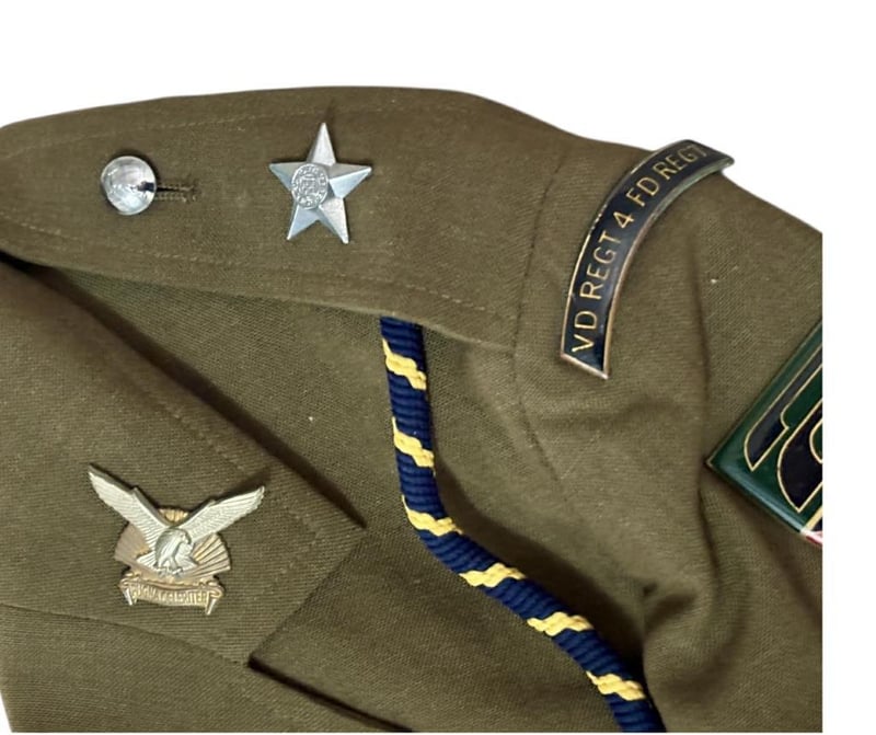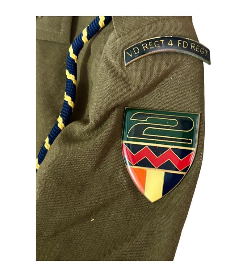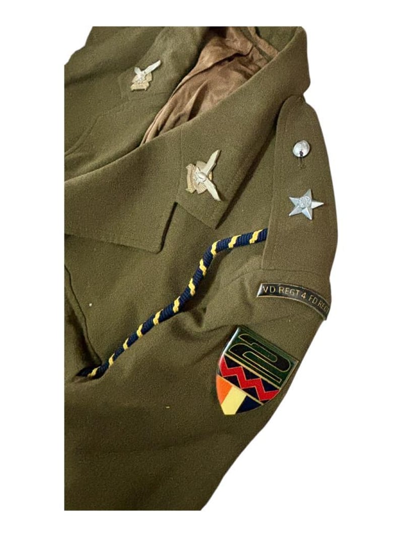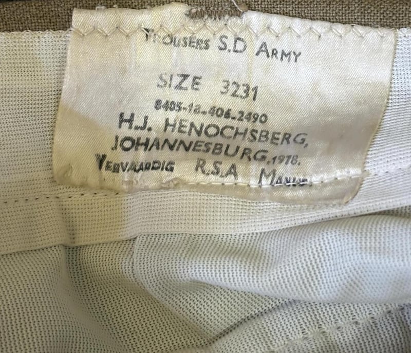 SOUTH AFRICAN BORDER WAR INFANTRY OFFICERS (2 SAI) TUNIC Tunic Features 2 South African Infantry Battalion Flashes, 1 Durban Regiment Collar Badges Wih 2Nd Lieutenant Rank Slides. Includes Pants. Condition: Good - Refer Images233666+73