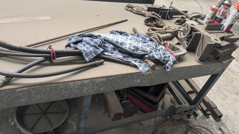 Metal Workbench, Includes Hydraulic Hose Lines, Castor Wheels on One Side Dimensions: 1030mm(D) x 2400mm(W) x 700mm(H)NOTE: INSPECTIONS HIGHLY RECOMMENDED, BUYER TO PROVIDE OWN LABOUR AND TOOLS FOR SAFE REMOVAL OF ASSETLocation: Marleston, SA Collections: Monday the 11th to Friday the 15th of May Contact: Gage Mackay - 0458 732 549 or [email protected]