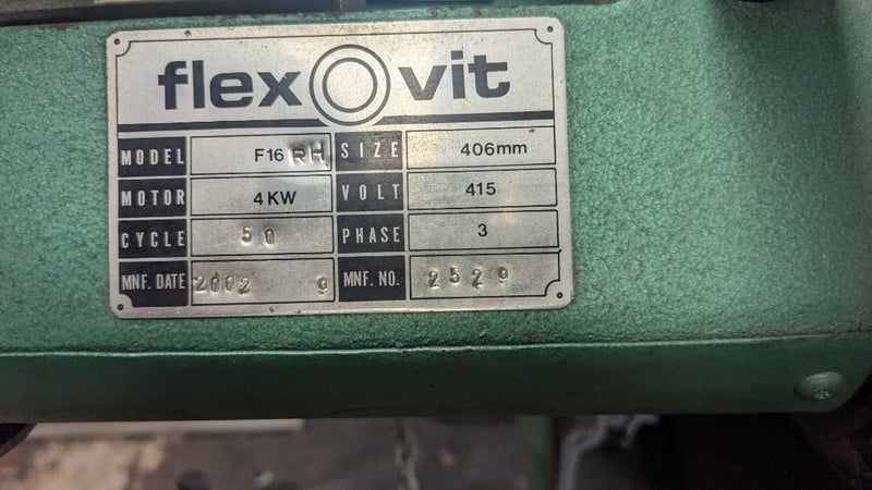 Flex Vit F16 RH 406mm Drop SawBrand: flex VitModel: F16 RHSerial no: 2529Date of Manufacture: 2002Description/Extras:4kw / 5.5HP, 3-Phase (380V/415V, 50Hz), Cutting Depth Max 110 mm at 90°; 100 mm at 45°, Bore Size 25.4 mmDimensions: 6000mm(W) x 600mm(D) x 1800mm(H) NOTE: INSPECTIONS HIGHLY RECOMMENDED, BUYER TO PROVIDE OWN LABOUR AND TOOLS FOR SAFE REMOVAL OF ASSETLocation: Marleston, SA Collections: Monday the 11th to Friday the 15th of May Contact: Gage Mackay - 0458 732 549 or [email protected]