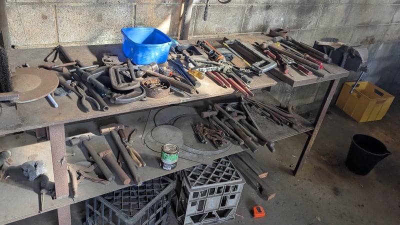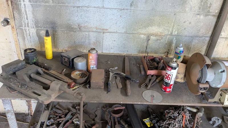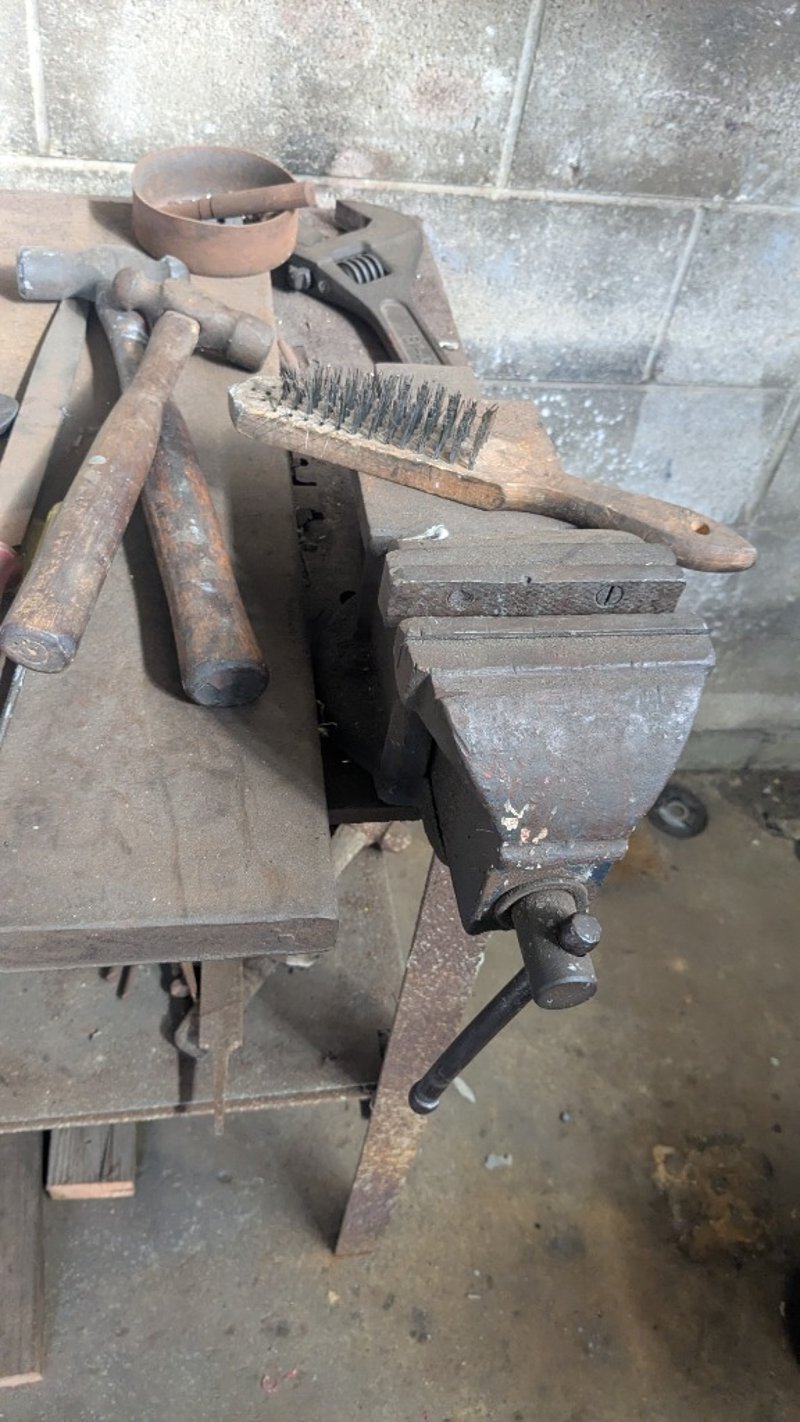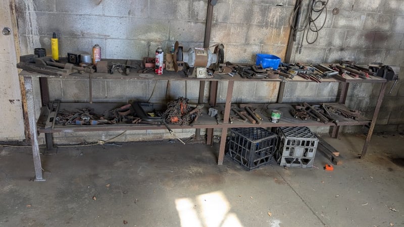 Metal Workbench, Includes Bench Vice, Bench Grinder and Assorted Hand Tools, 2 Tier