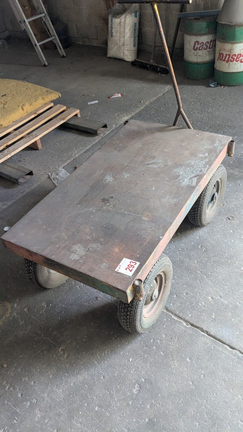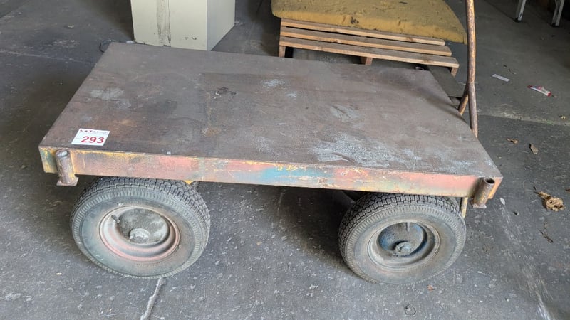 Moving Flat Bed Trolley, Metal TopDimensions: 700mm(D) x 1250mm(W) x 500mm(H)NOTE: INSPECTIONS HIGHLY RECOMMENDED, BUYER TO PROVIDE OWN LABOUR AND TOOLS FOR SAFE REMOVAL OF ASSETLocation: Marleston, SA Collections: Monday the 11th to Friday the 15th of May Contact: Gage Mackay - 0458 732 549 or [email protected]