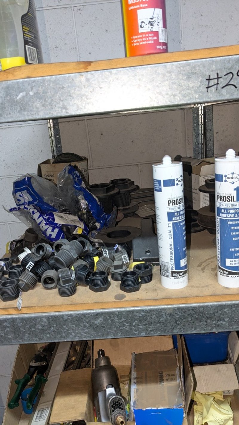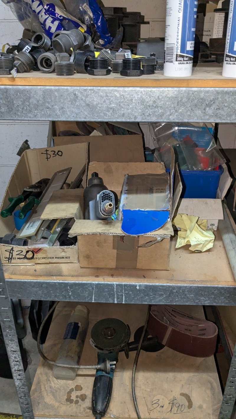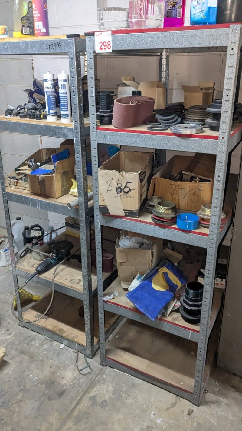Metal Storage Racks, 3 Tier, Ply Wood Shelves, Includes Assorted Fittings, Sanding Belts, and more, Quantity 2Dimensions: 900mm(W) x 600mm(D) x 1800mm(H)SOLD AS LOT NOTE: INSPECTIONS HIGHLY RECOMMENDED, BUYER TO PROVIDE OWN LABOUR AND TOOLS FOR SAFE REMOVAL OF ASSETLocation: Marleston, SA Collections: Monday the 11th to Friday the 15th of May Contact: Gage Mackay - 0458 732 549 or [email protected]