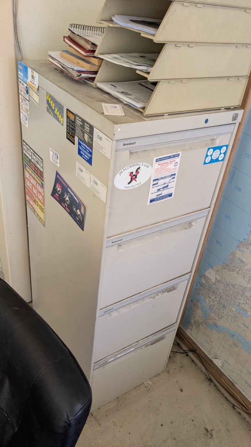Desks and Cabinet, Timber Laminate, Includes Desk ChairSOLD AS LOTNOTE: INSPECTIONS HIGHLY RECOMMENDED, BUYER TO PROVIDE OWN LABOUR AND TOOLS FOR SAFE REMOVAL OF ASSETLocation: Marleston, SA Collections: Monday the 11th to Friday the 15th of May Contact: Gage Mackay - 0458 732 549 or [email protected]