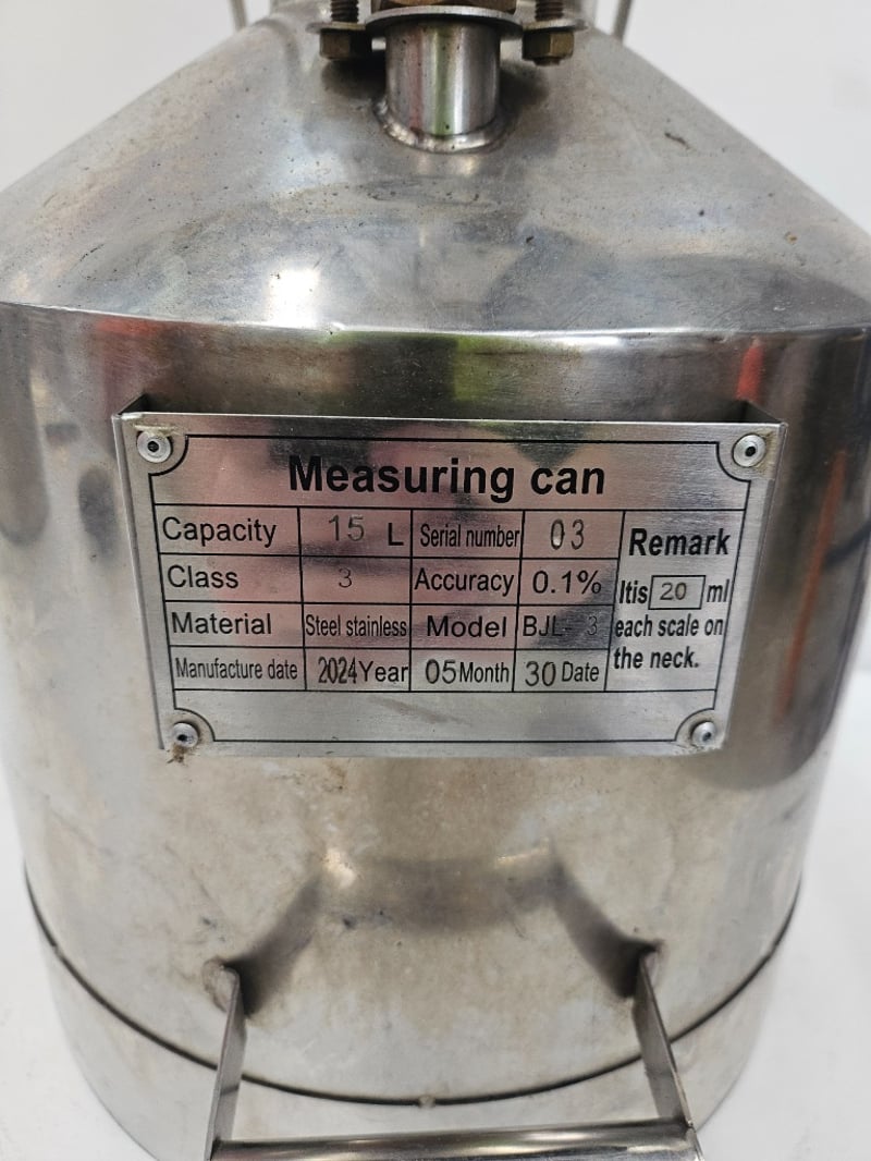 Fuel Measuring Can, Make and Model No: Unknown, 15L Capacity, Stainless Steel