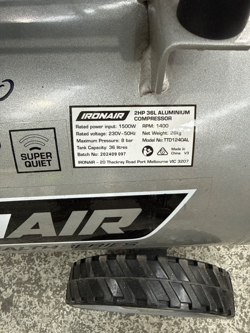Air Compressor, Iron Air, TTD1240AL, 2HP 36L Aluminium Compressor, Input: 1500W, Voltage: 230V- 50Hz