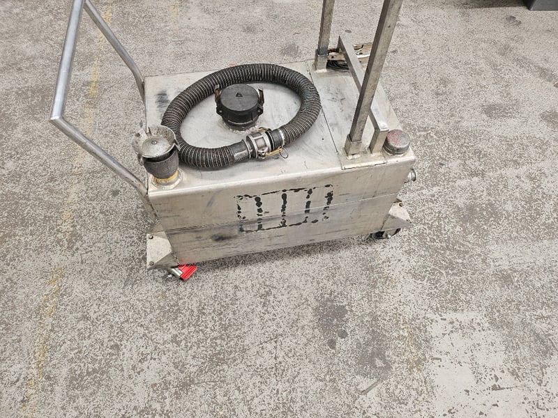 Industrial Fuel Container with Hose, Unknown Make and Model,