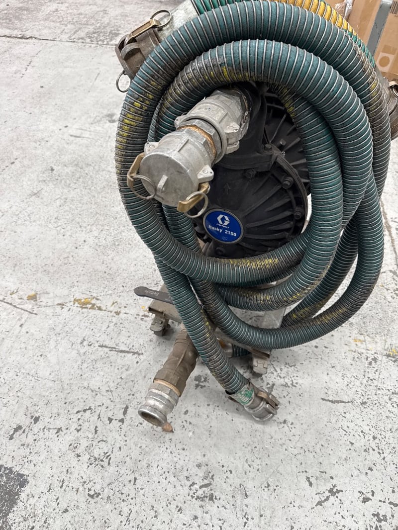 Industrial Pump, Graco, Husky 2150, Part No: DF3525, Serial No: 18A12F, includes some hose attachments Approx Dimensions: 85H x 110W x 45D