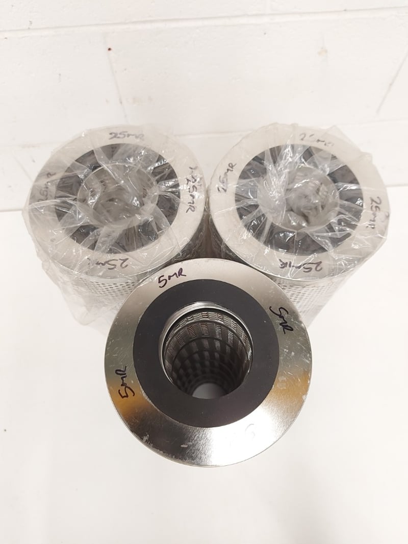 Hydraulic Oil Filter, Make and Brand unknown Dimensions: H45cm x W16cm x D16cm Qty x2 items of model number 25MR & x1 item of 5MR Note: Some items may exhibit dents & scratches Sold as lot