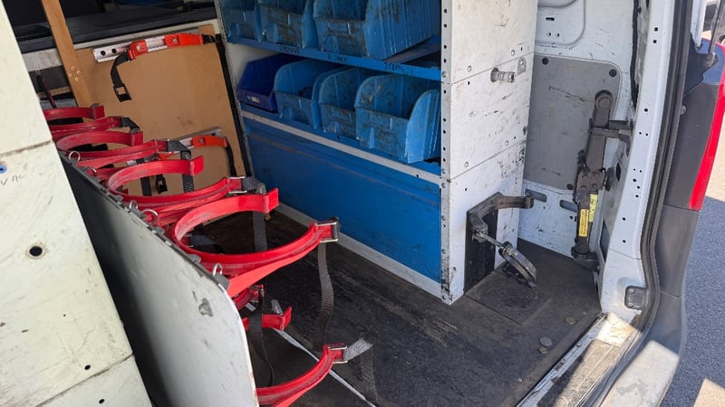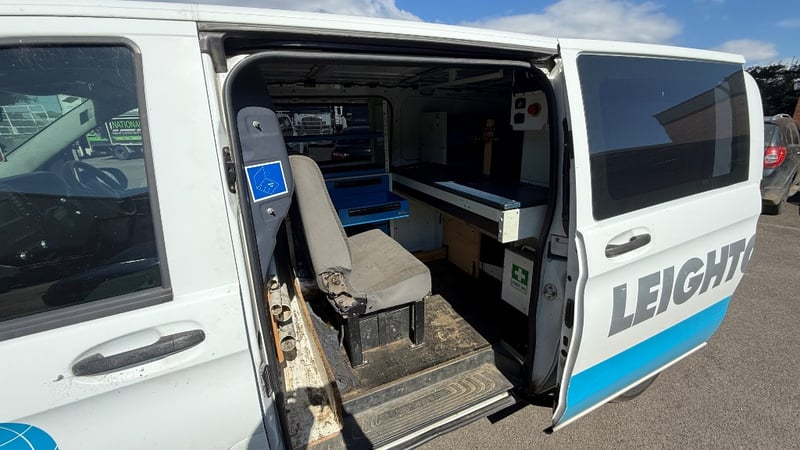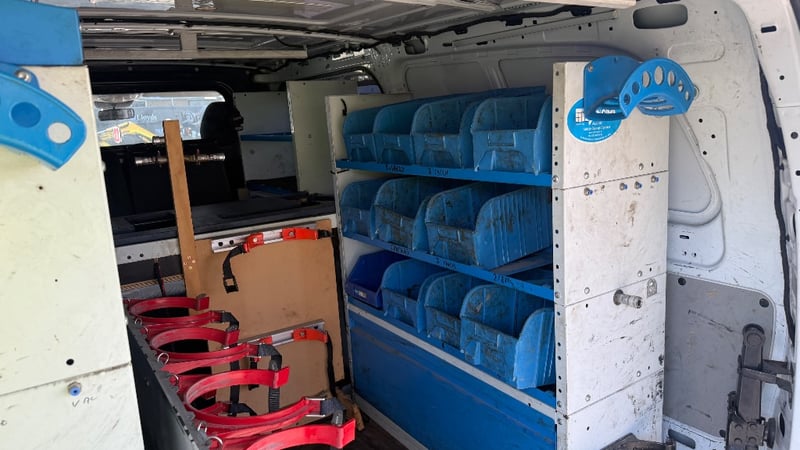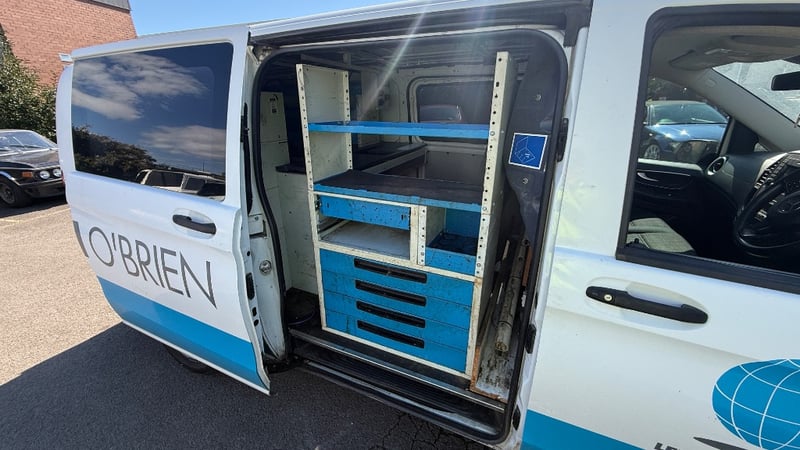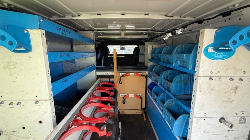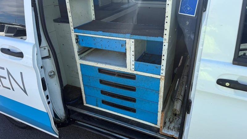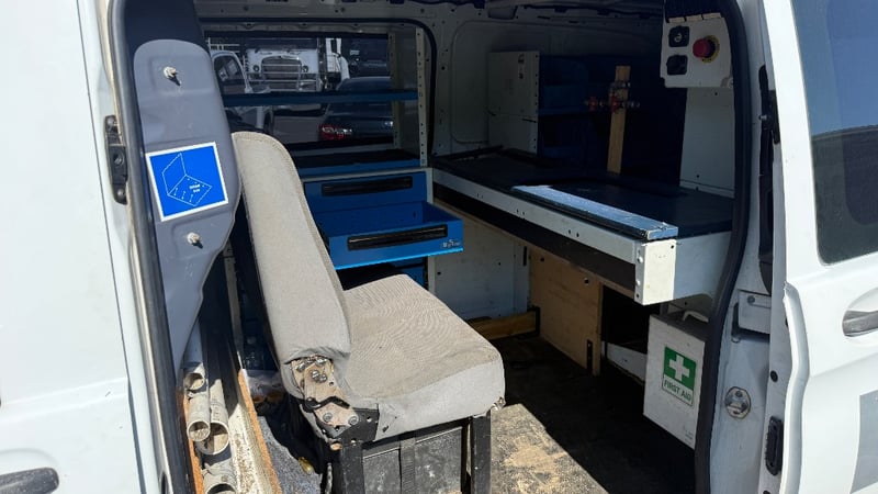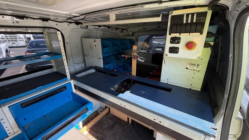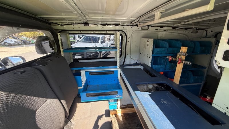 Work shop fit out, Storage shelving, work bench, First aid kit, Engine light on, minor scratches and paint imperfections please.