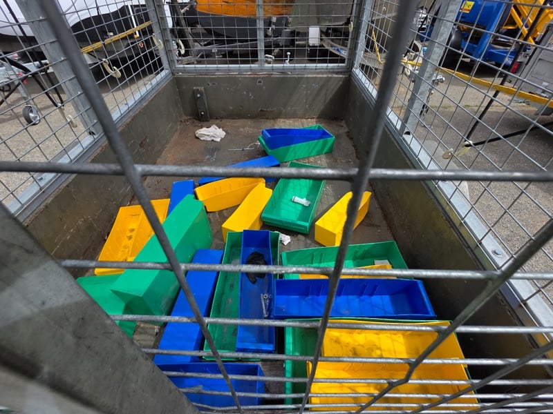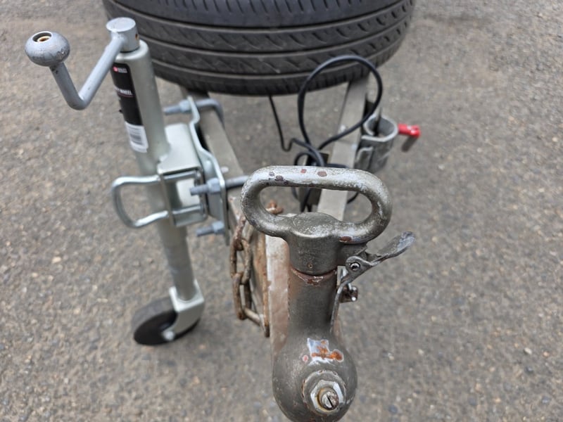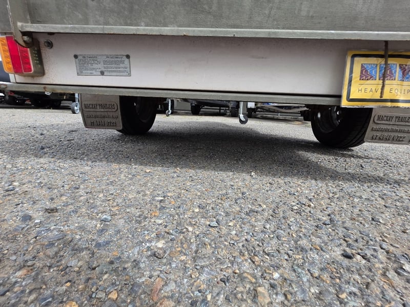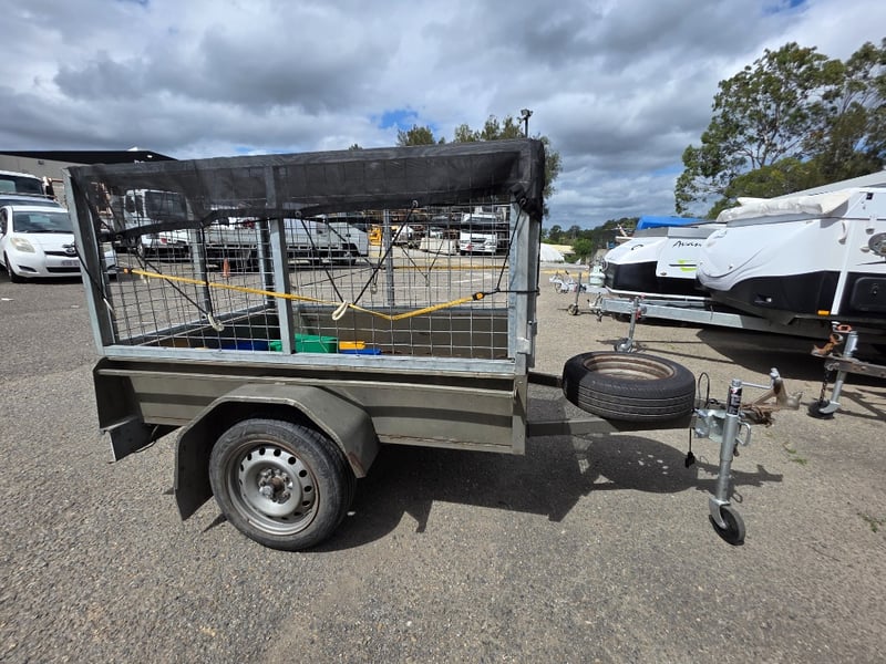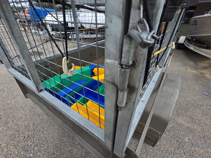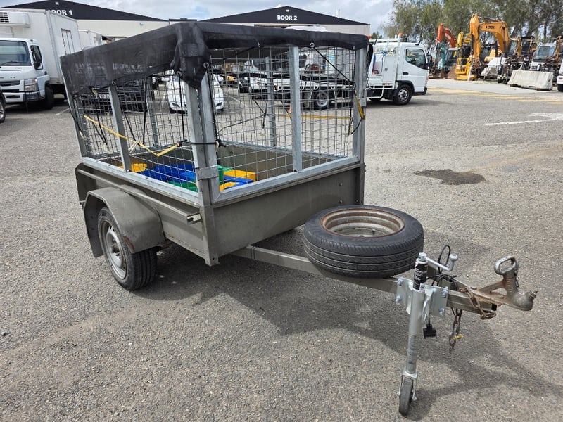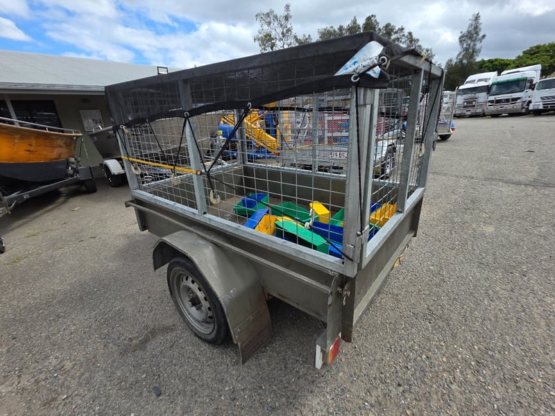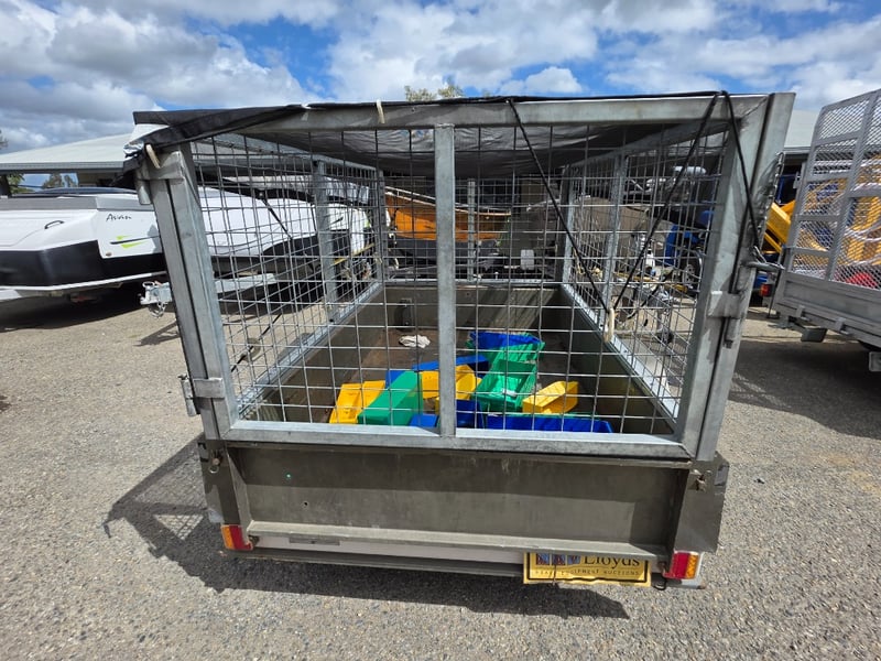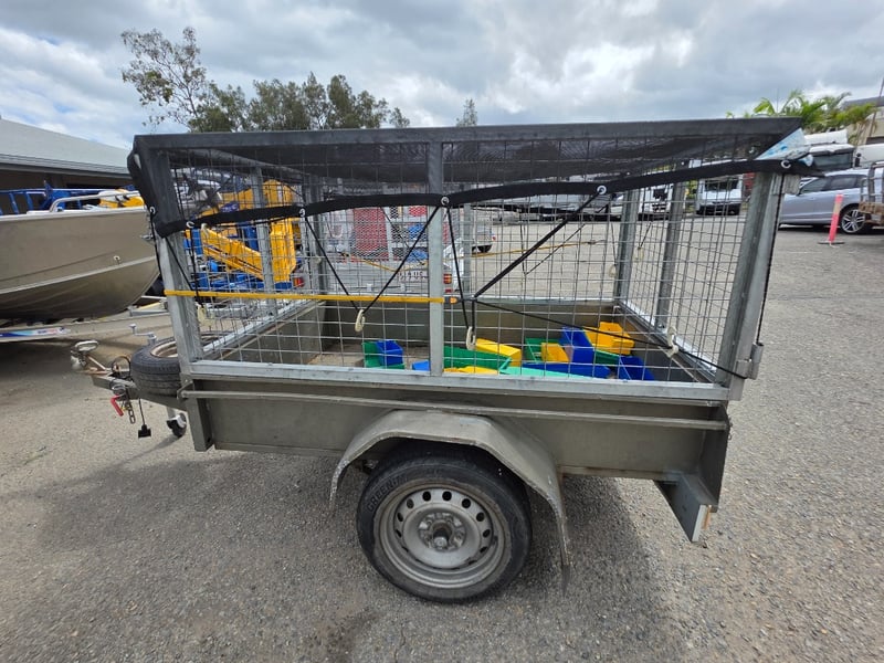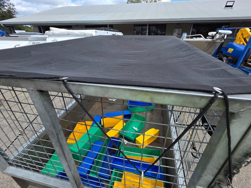 Description: Box Trailer with Mesh hook cover and plastic containers included.