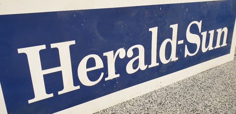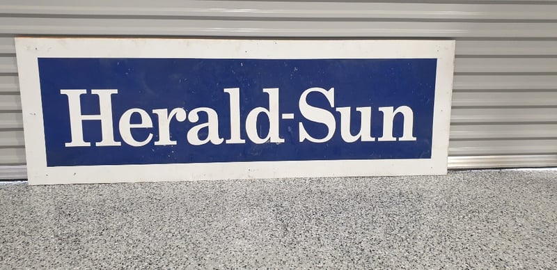 Herald Sun Sign 1800 x 600 Steel with Vinyl Lettering Blue Bid Per Each