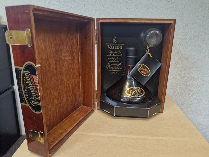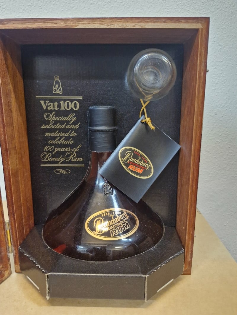 Bundaberg Rum Vat 100 Centenary Collection, to timber box with bottle stopper