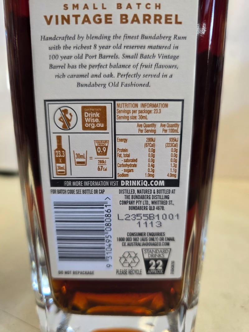 Bundaberg Small batch Vintage Barrel 700ml 40% Alc/Vol