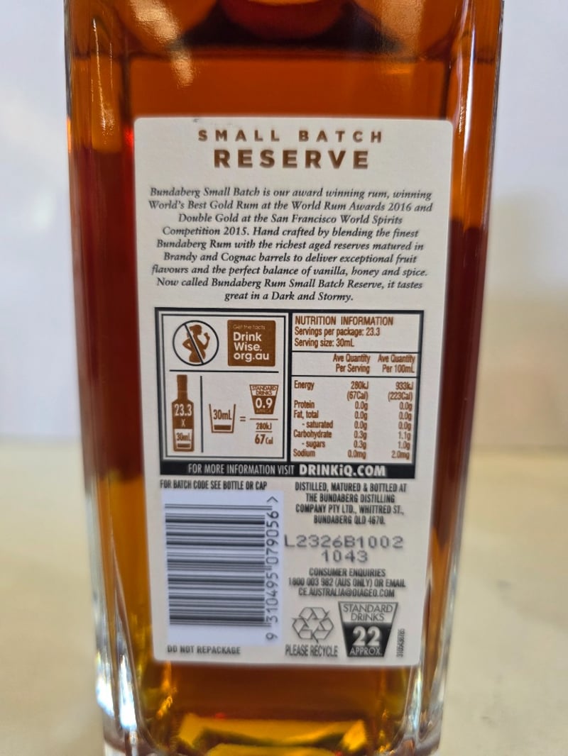 Bundaberg Small Batch Reserve Rum 700ml 40% Alc/Vol