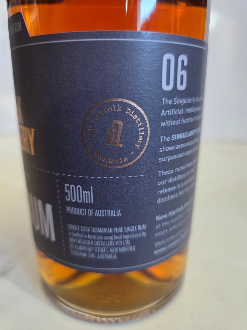 New Norfolk Distillery Pure Tasmanian Single Cask Rum 500ml 66.6%ABV Bottle: 125/180