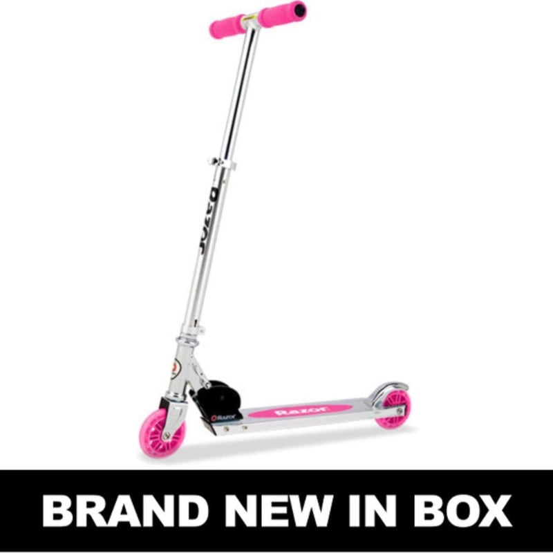 RRP $70 Razor A Kick Scooter - Pink Super Special The Razor A Special Edition kick scooters with their unique graphics put a new twist on our all-time iconic ride. Ready to go right out of the box, the lightweight A Special Edition kick scooters match updated styling with an aluminium deck, our original folding mechanism, rear fender brake, and urethane wheels to make it the perfect ride for kids on-the-go. Ready to Ride Unfold and go – it’s that easy with the Razor A Special Edition kick scooters. With no assembly required, and easy-adjust handlebars to set the perfect ride height, the Razor A Special Edition kick scooters are ready for their first adventure as soon as you are. Reinventing a Classic Our iconic Razor A kick scooter has set the standard for fun since it launched a global phenomenon in 2000. And with all-new Special Edition graphics that add an extra splash of style to our classic design, you can launch the next phenomenon in your neighborhood. Features Special Edition graphics feature either a bright color tie-dye effect. Top quality aluminum construction that is lightweight yet durable. Features Razor’s original folding mechanism for quick and easy carry, transport, and storage between rides. Easy-adjust handlebars can be set to the perfect ride height. Additional features include rear fender brake and urethane wheels. No assembly required, ready to ride out of the box.