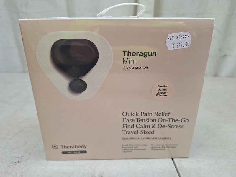 THERABODY wellness, Theragun mini 3rd generation, 3 massage attachments/speeds, RRP $349, NEW factory sealed in box