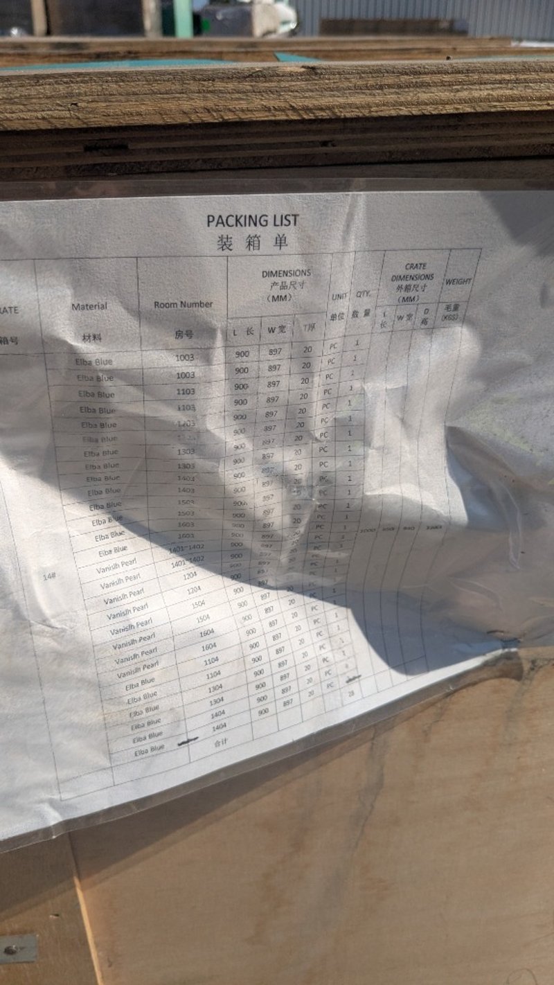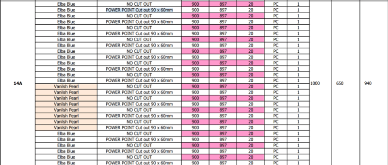 Marble, Manchetti Natural Stone - Elba Blue and Vanilsh Pearl, No Cut-Out and PowerPoint Cut-outDimensions: 900mmL x 897mmW x 275mmDPOWER POINT Cut out 90 x 60mmBid per Pc must take 28Pcs