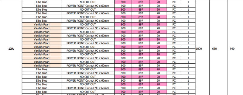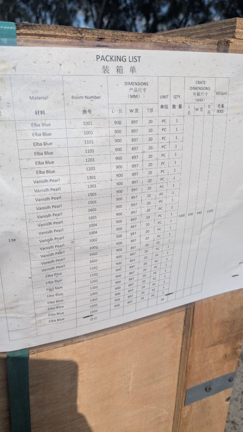 Marble, Manchetti Natural Stone - Elba Blue and Vanilsh Pearl, No Cut-Out and PowerPoint Cut-outDimensions: 900mmL x 897mmW x 275mmDPOWER POINT Cut out 90 x 60mmBid per Pc must take 26Pcs