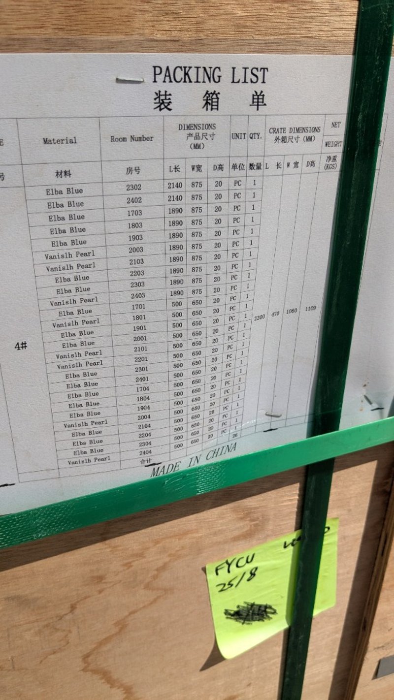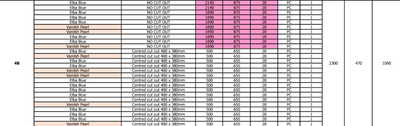 Marble, Manchetti Natural Stone - Elba Blue and Vanilsh Pearl, No Cut-Out and Centred Cut-OutDimensions: 500-1890mmL x 650-875mmW x 20mmDCentred cut out 400mm x 380mmBid per Pc must take 26Pcs