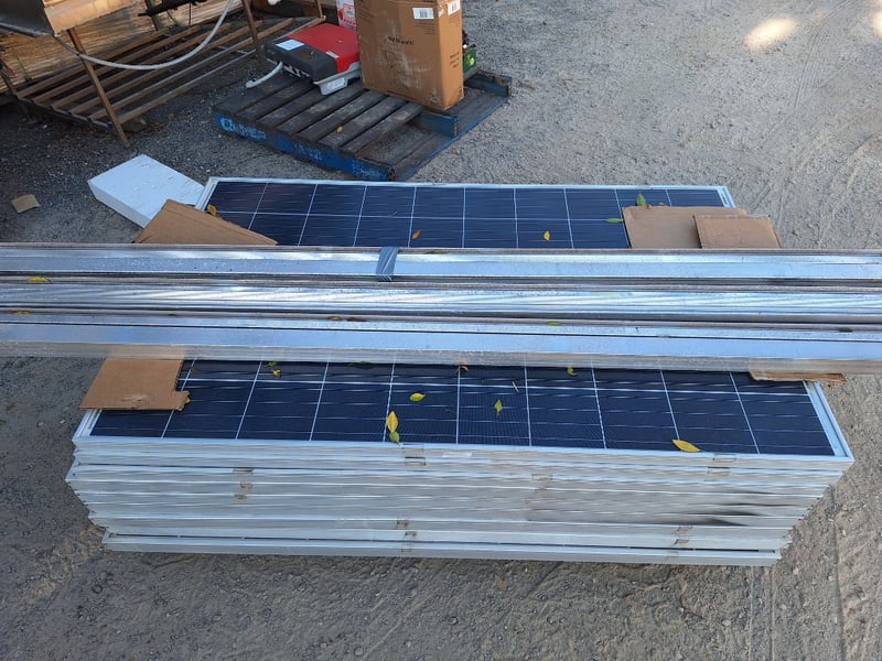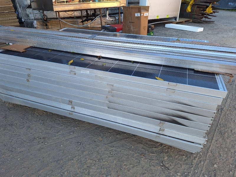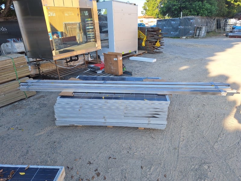 X9 Solar Panels With Mount Rails Panels Dimensions Approx H:4cm W:165cm D:99cm Rails Dimensions Approx H:5.5cm W:341cm D:3cm SOLD AS LOT PLEASE NOTE: Due To The Nature Of This Item, Shipping Is Not Available. Local Collection Only