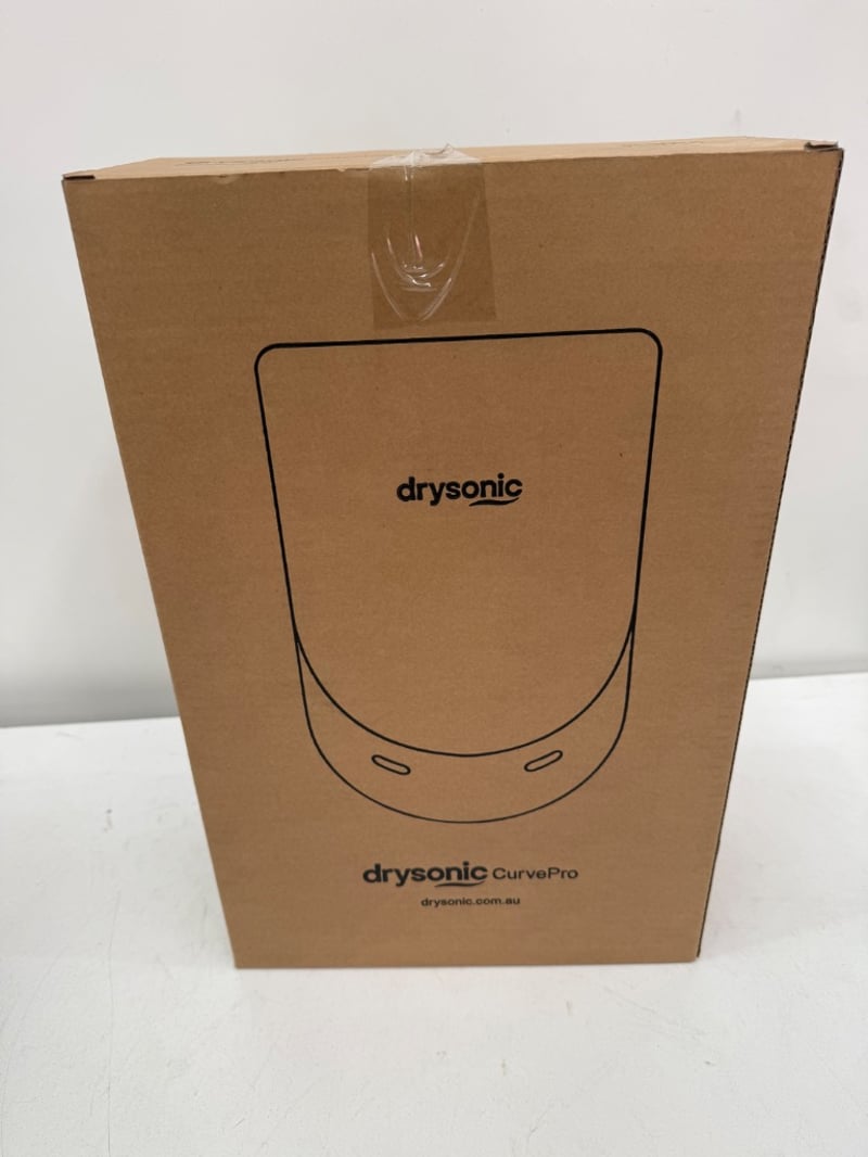 RRP:$899, Hand Dryer, Drysonic®, CurvePro, High Speed Drying, Sustainable Design, Unrivalled Hygiene, Stainless Steel Durability, Perfect for High-Traffic Areas. Brand New in Box. Dimensions: W 235mm x H 385mm x D 98mm Voltage: 220-240V, 50-60Hz Power: 1800-2100w Dry time: 8-10 seconds Decibel level: 79dB HEPA filter: Yes Motor speed: 70,000rpm Airspeed at apertures: 160m/s Weight: 3.4kg Bid Per Each
