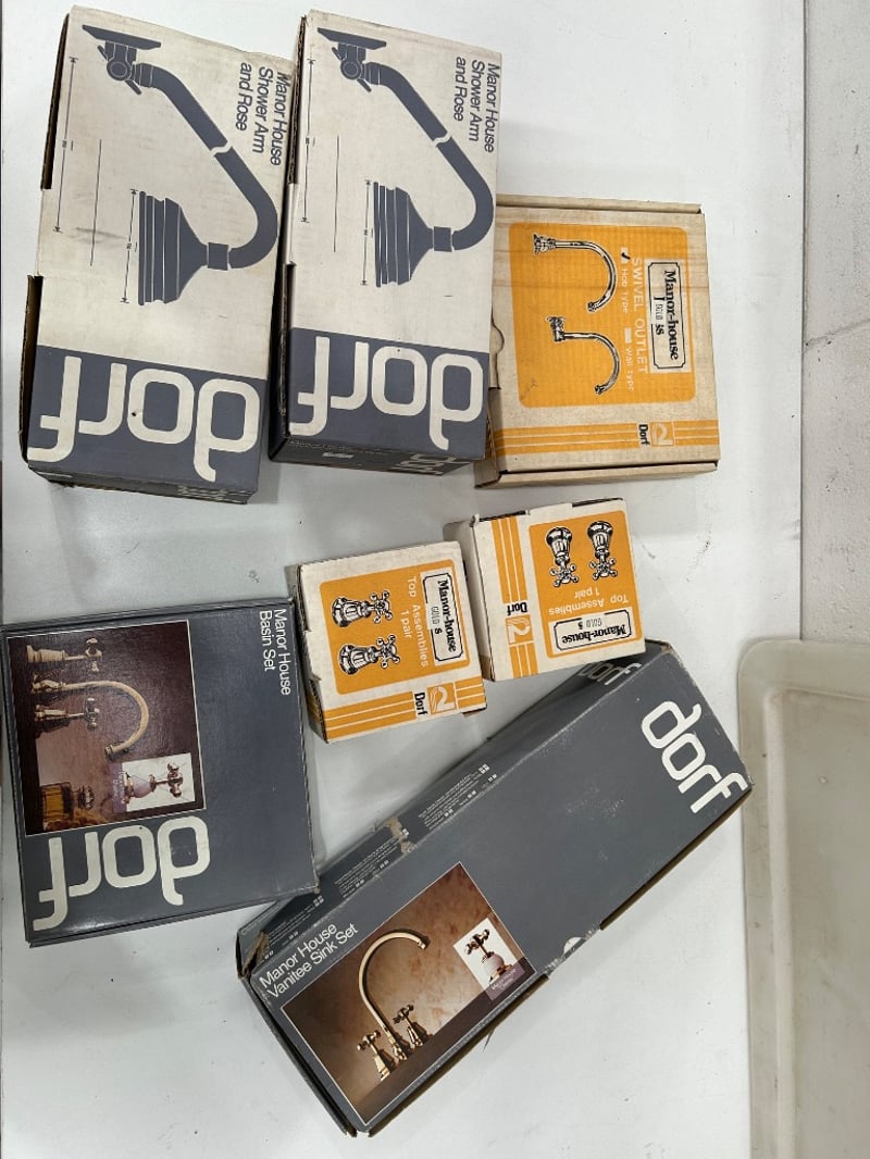 Single lever Kitchen mixer tap and fittings Assorted wall top assemblies and fittings Assorted plumbing components and fittings Assorted shower heads and fittings Assorted cold water faucet and fittings