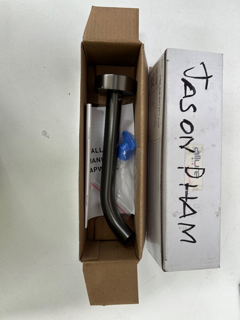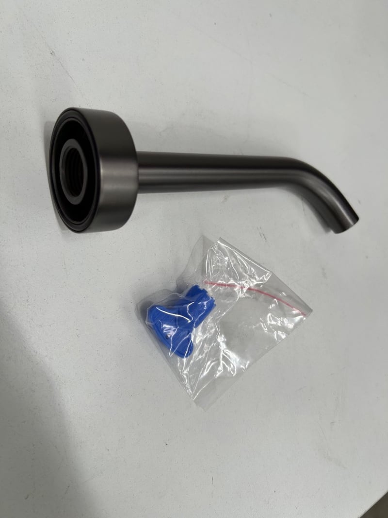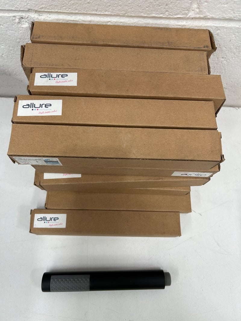 Assorted wall mounted shower arms and fittings Assorted matte black hand held shower heads Assorted matte black tapware spouts and fittings