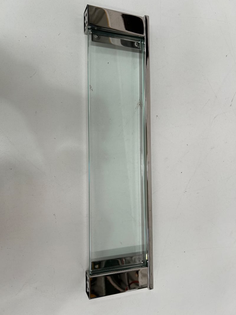 Glass shelves with steel frames and fittings Assorted Infrared sensor bathroom sink faucet and fittings Make: Unknown Sold as lot