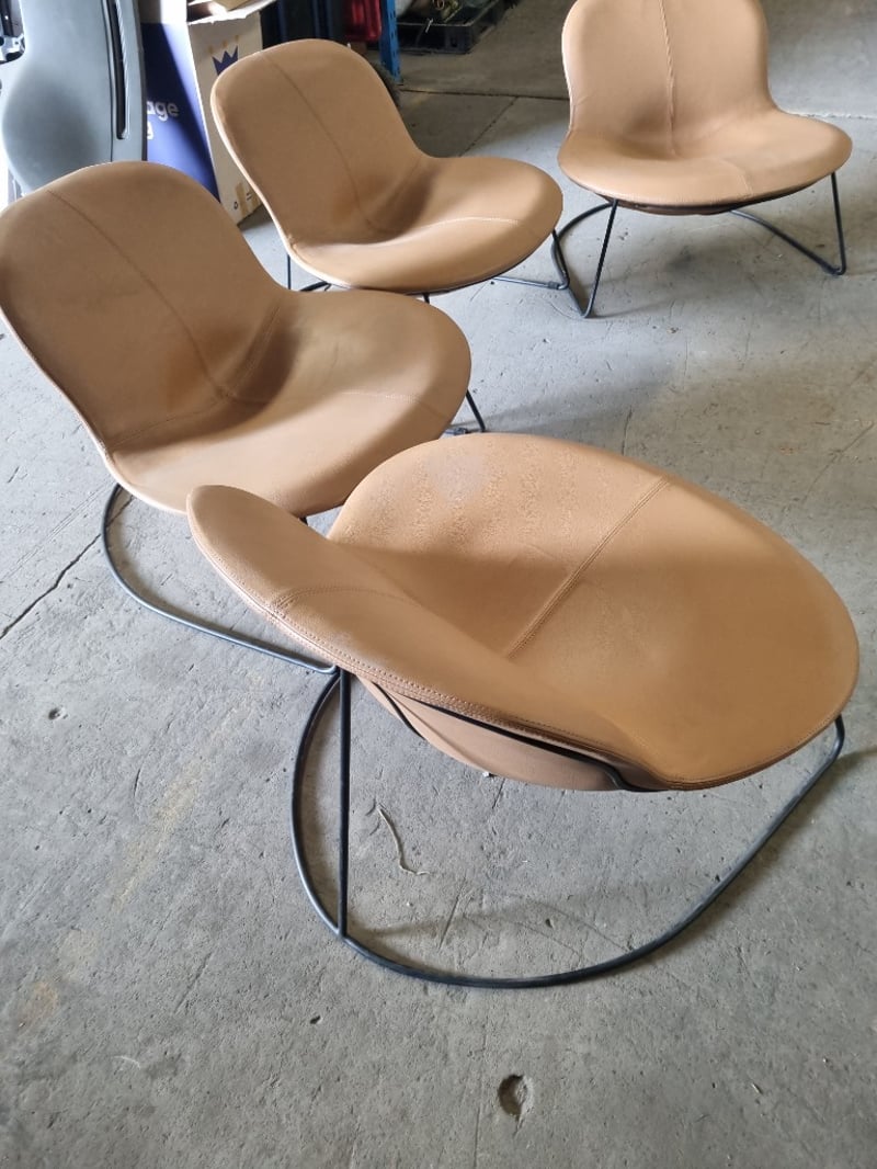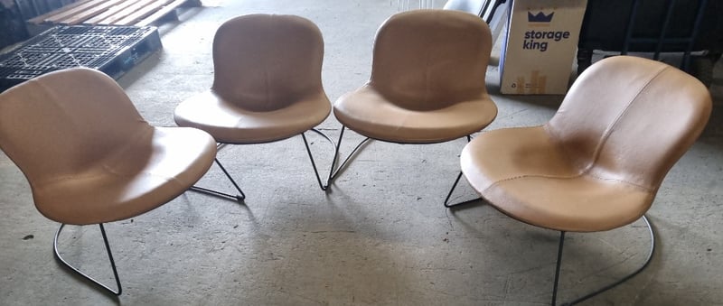 Office Chairs, Retro, Tan, Leather style, Steel frame, Qty x 4